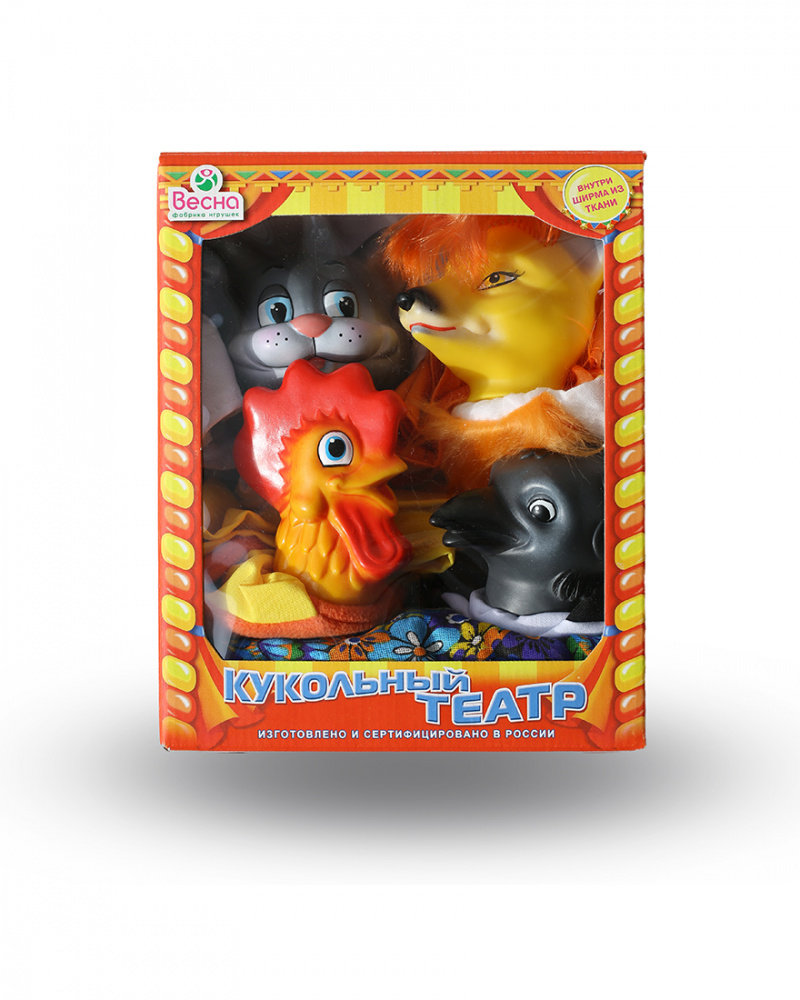 Кукольный театр с ширмой 4 персонажа №3. Размер коробки 20*18*9 см.