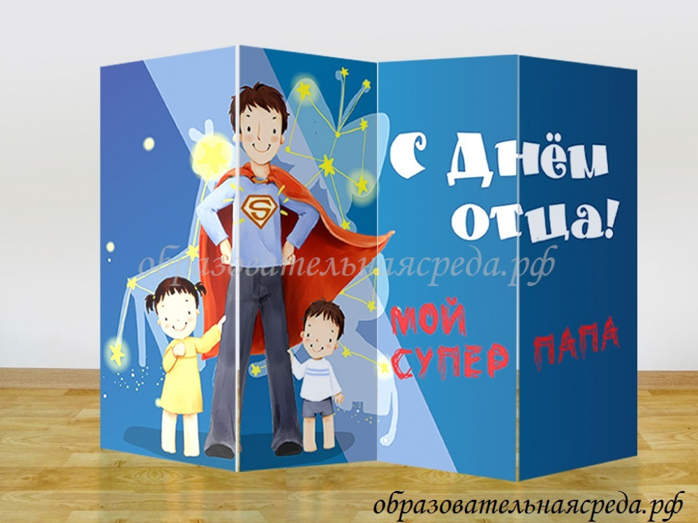 Напольная ширма гармошка "День матери-отца" выполнена из МДФ с нанесением полноцветного рисунка с двух сторон ширмы.Ширма состоит из четырех створок, скрепленных между собой на петлях. Для удобства в эксплуатации ширма складывается гармошкой и при хранении занимает мало места.