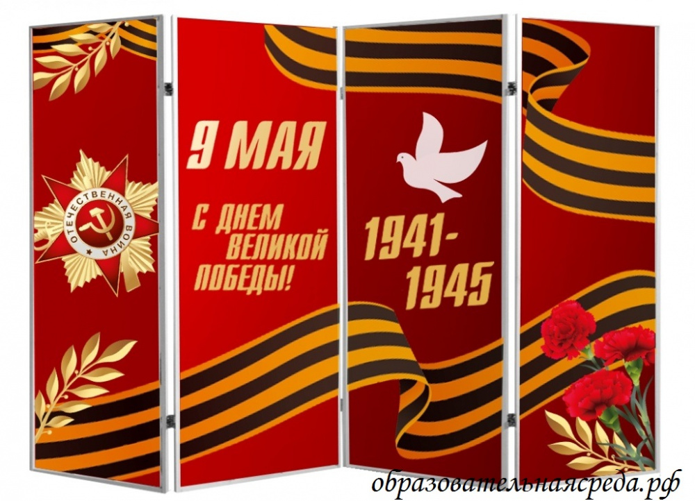 С обратной стороны ширмы нанесен рисунок на тему 9 мая.