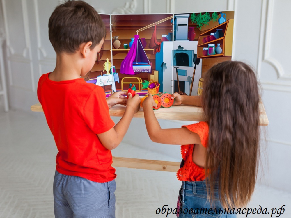 Настольная ширма "Изба" предназначена для сюжетно-ролевых игр малышами. Она переместит их в сказочную избушку и даст волю их воображению. Ширма выполнена из пластика с нанесением полноцветного красочного рисунка. Ширма имеет три створки и два игровых пространства: изба внутри, изба снаружи, что позволяет играть сразу нескольким детям. Размеры створок 0,3м х 0,4м, что делает ее мобильной и удобной в использовании. Мы организуем доставку по всей России и предложим вам наилучшую цену на продукцию.