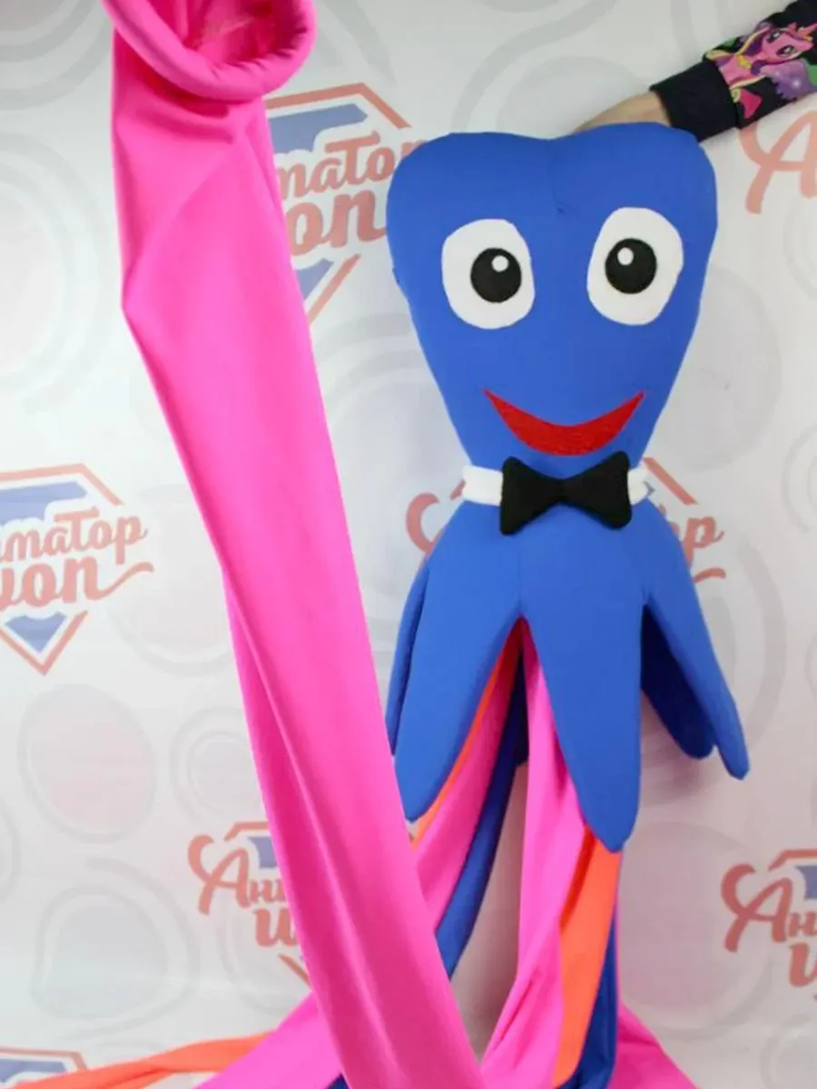 С таким реквизитом детям на празднике точно не будет скучно. На Осьминоге есть ручка для придерживания аниматором реквизита, а детки могут просовывать шарики по разноцветным щупальцам яркого и красочного обитателя морей. Для реквизита подходят шарики из игрового бассейна.