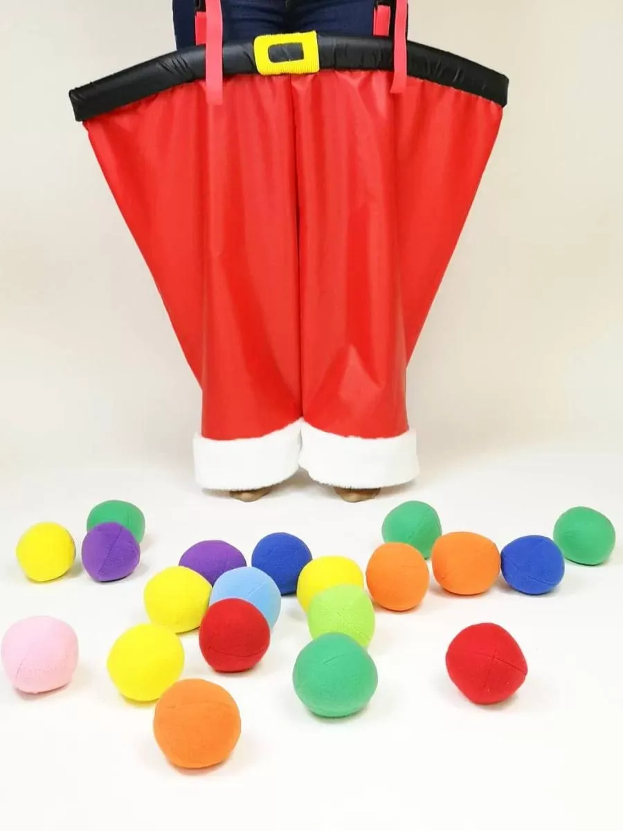 Представляем вам реквизит аниматора “Штаны Санты” – яркий и забавный реквизит, который позволит создать веселую и праздничную атмосферу на детском новогоднем мероприятии! Этот реквизит включает в себя красные штаны Санты и 20 шариков разных цветов.