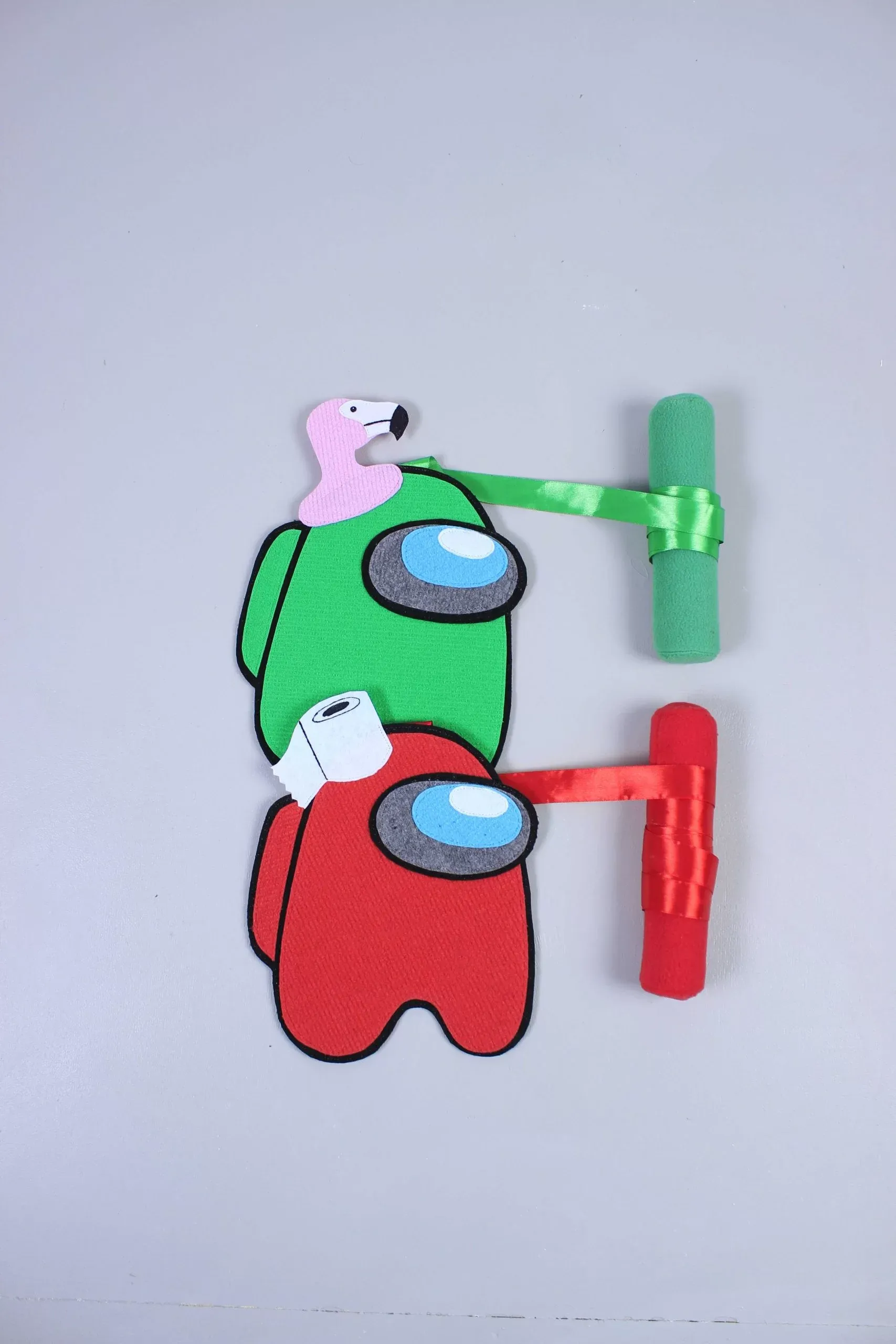 В комплекте 2 амонга-моталки – зеленый с розовым фламинго на голове и красный с туалетной бумагой.