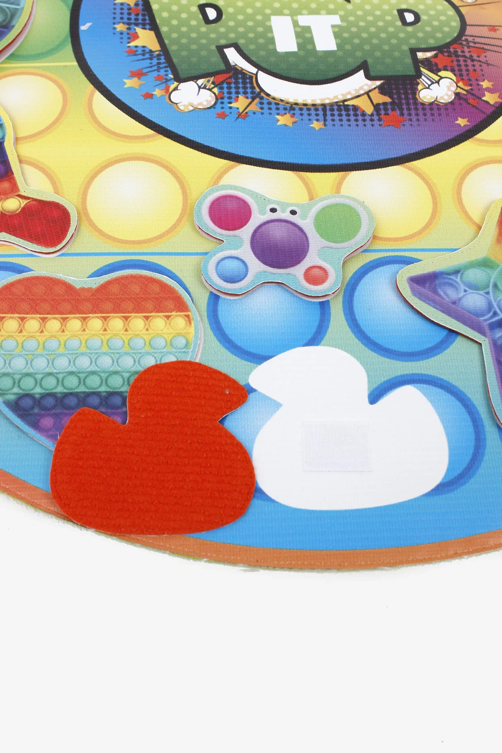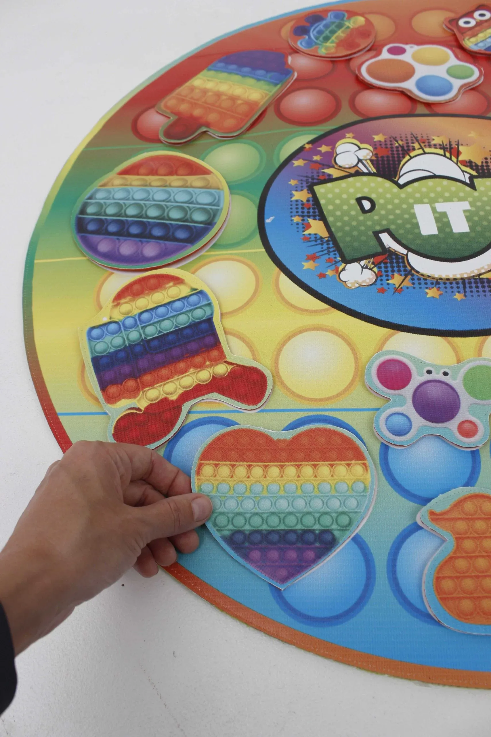В комплект входит круглое полотно с тенями и 13 картинок в виде поп-итов разной формы.