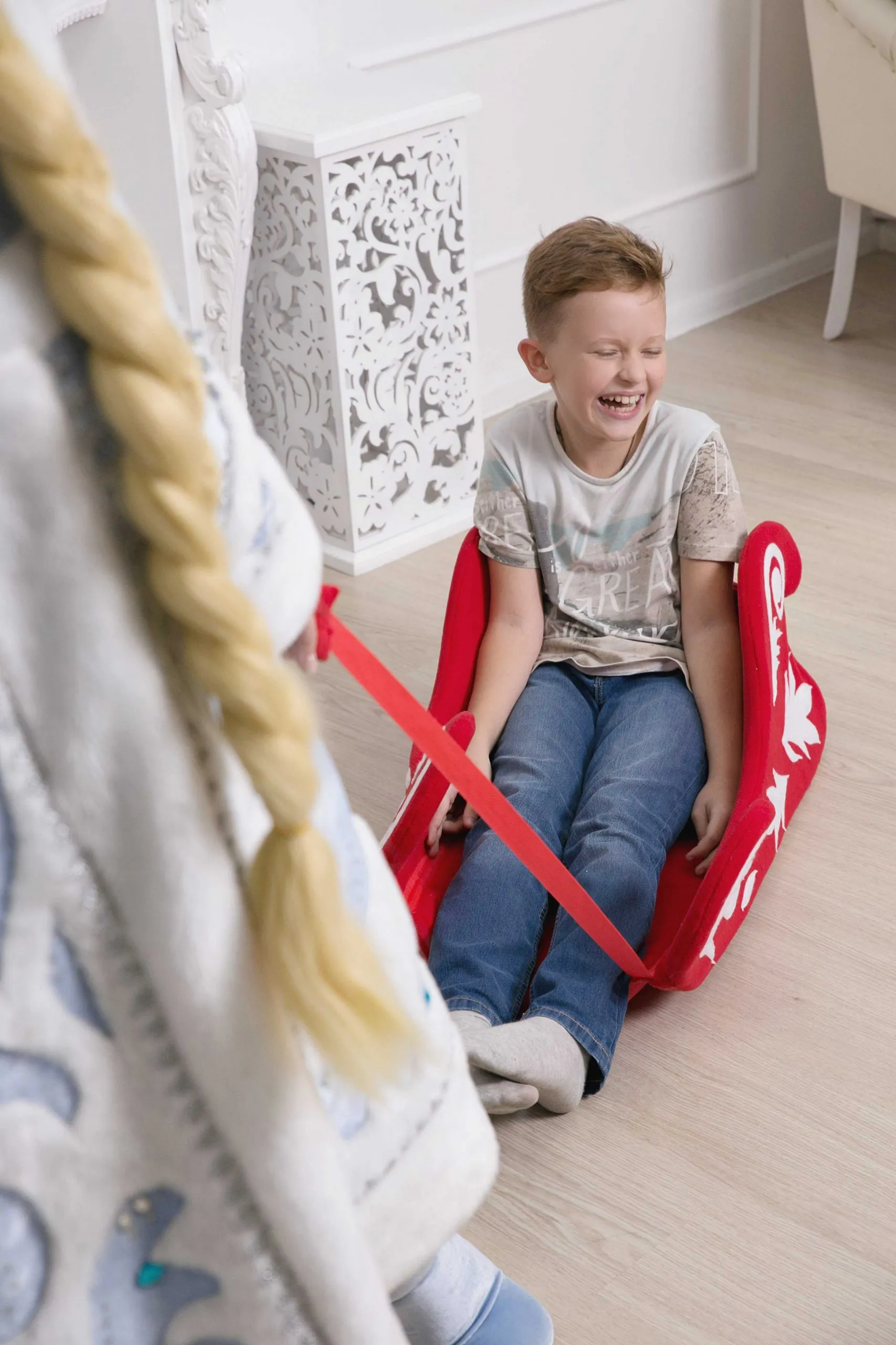 Так же возможно заказать реквизит в голубом цвете и устраивать гонки на санях Деда Мороза и Снегурочки.