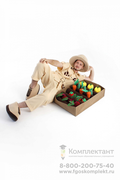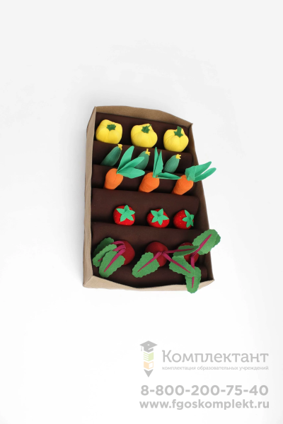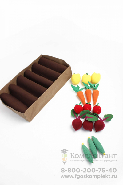 Универсальный реквизит, который подойдет для различных мероприятий. Наша грядка волшебная, так как в ней растут сразу 3 вида овощей и 1 вид ягод: 3 морковки, 3 свеклы, 3 огурца, 3 клубнички. По желанию состав и количество овощей можно менять.