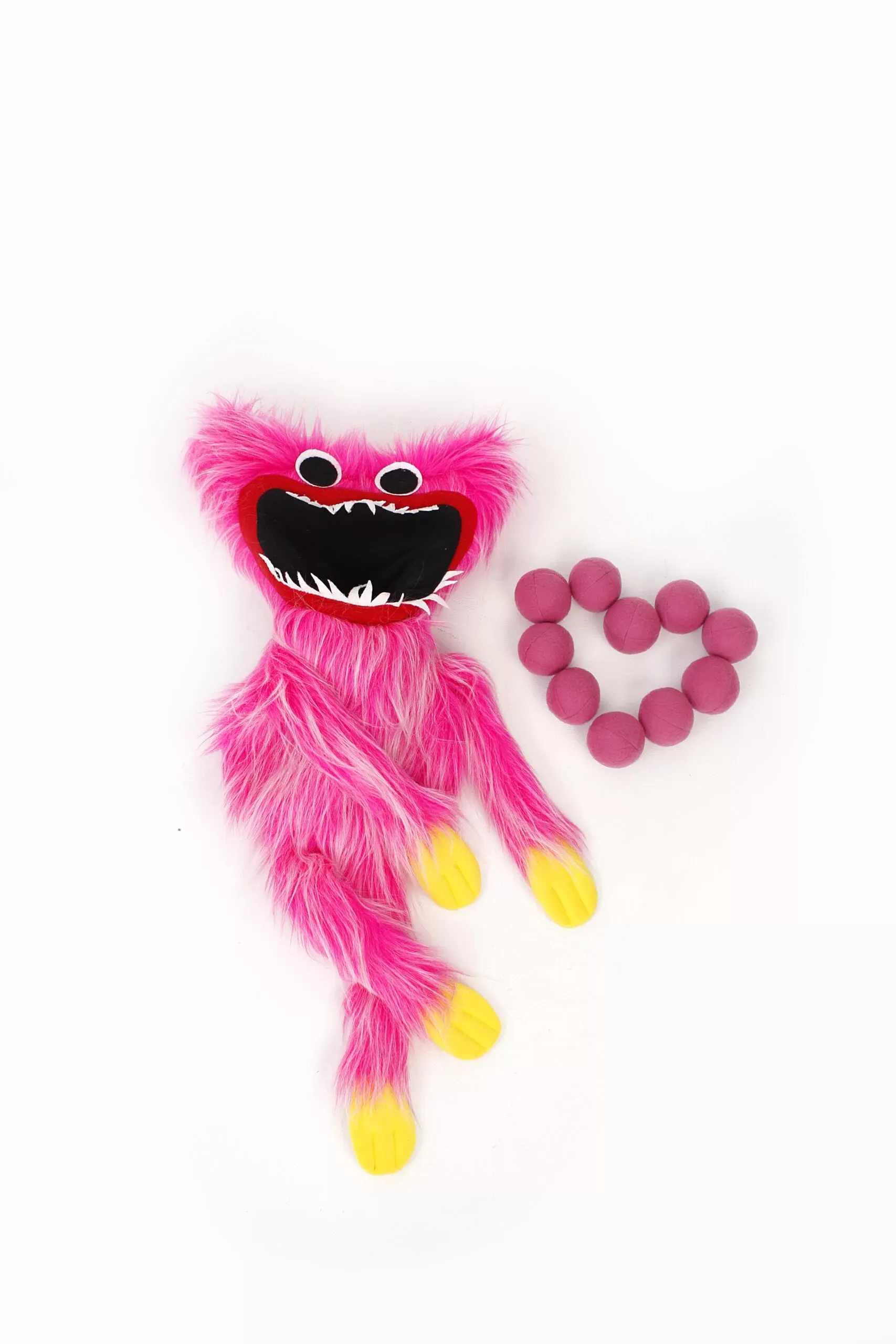 В животе у нашего забавного монстрика спрятан мешочек, в который и попадают шарики. Сделан он в стиле персонажа из длинноворсового меха, лапки и ушки из мягкого флиса. Очень гармонично реквизит смотрится с нашими костюмами Хаги-Ваги и Киси-Миси.