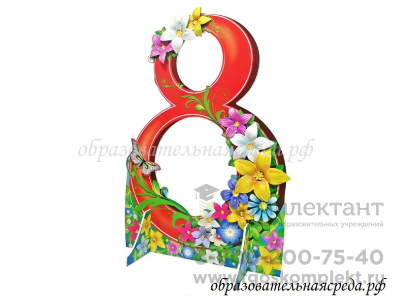 Театральная декорация "8 марта" выполнена из МДФ, с нанесением полноцветного рисунка и каскадом объемных цветов. Высота декорации 1,45м, ширина - 1м. Декорация "8 марта" подойдет в качестве основного элемента декора к празднику весны.