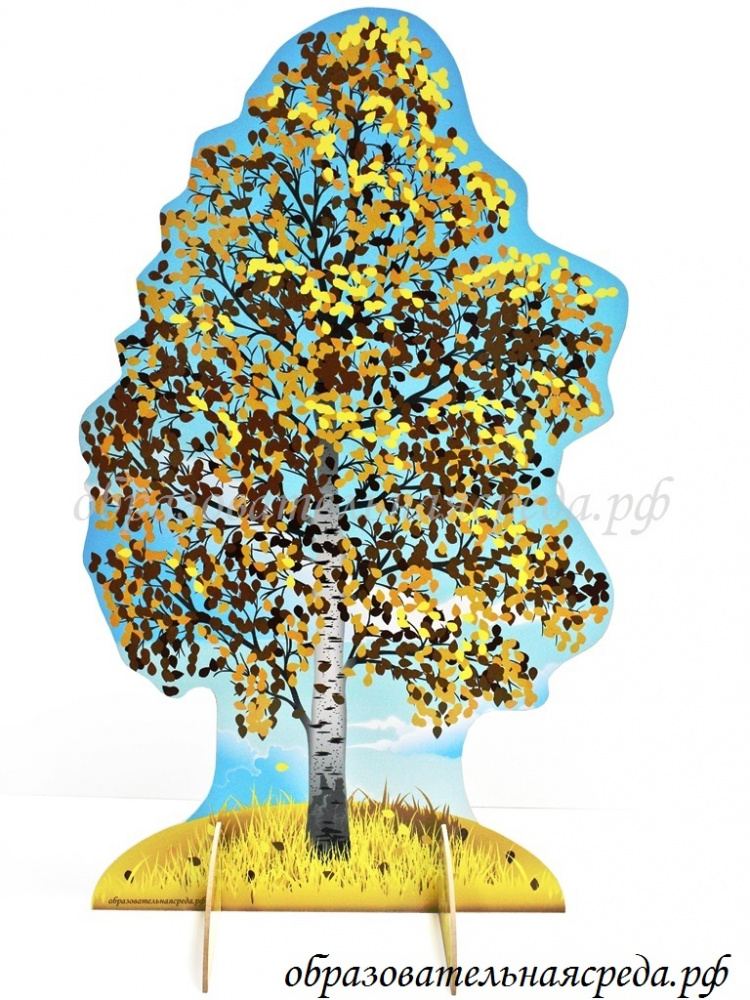 Декорация "Береза" отлично подойдет для детского представления и украсит любой праздник. Осенний вариант с одной стороны и летний с другой позволит использовать "Березу" на многих утренниках. Выполненная по стандартам ФГОС ДО, декорация прослужит садику не один год.
