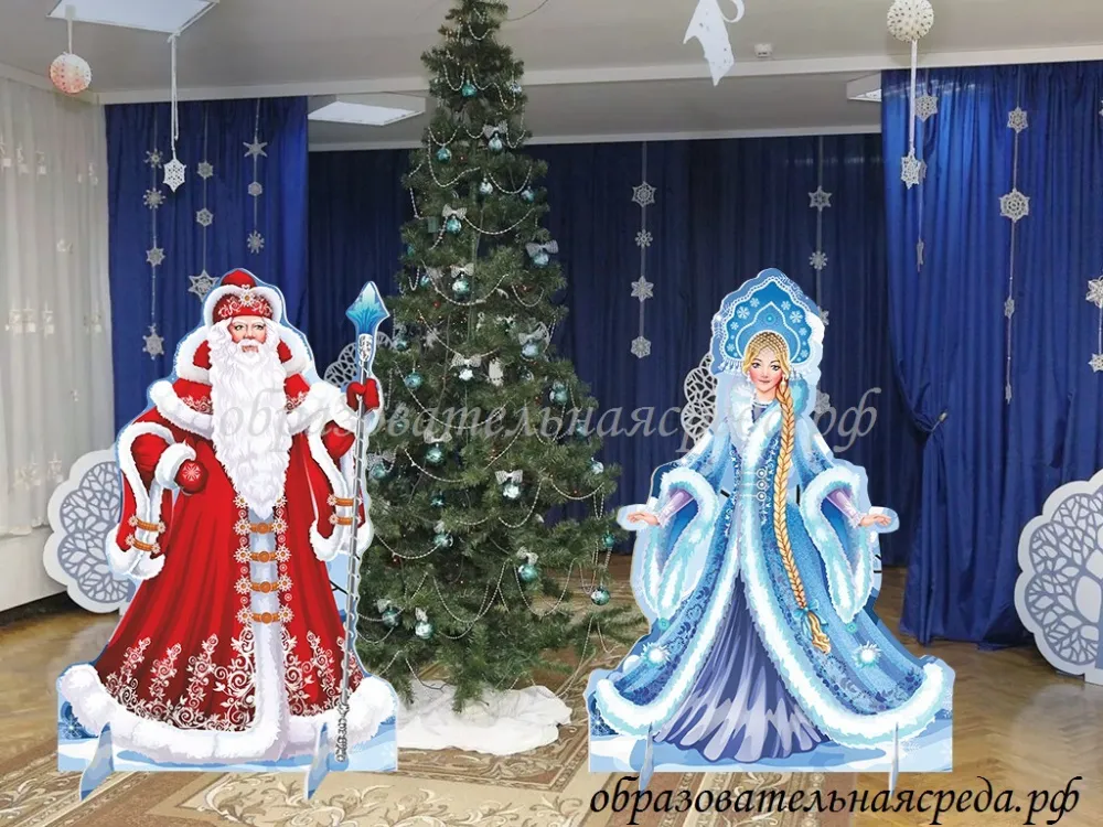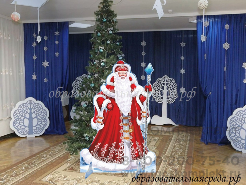 Театральная декорация ""Дед Мороз Волшебный" выполнена из МДФ, с нанесением полноцветного рисунка с двух сторон. Высота декорации 1,8м, ширина - 1,22м.