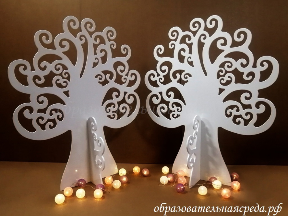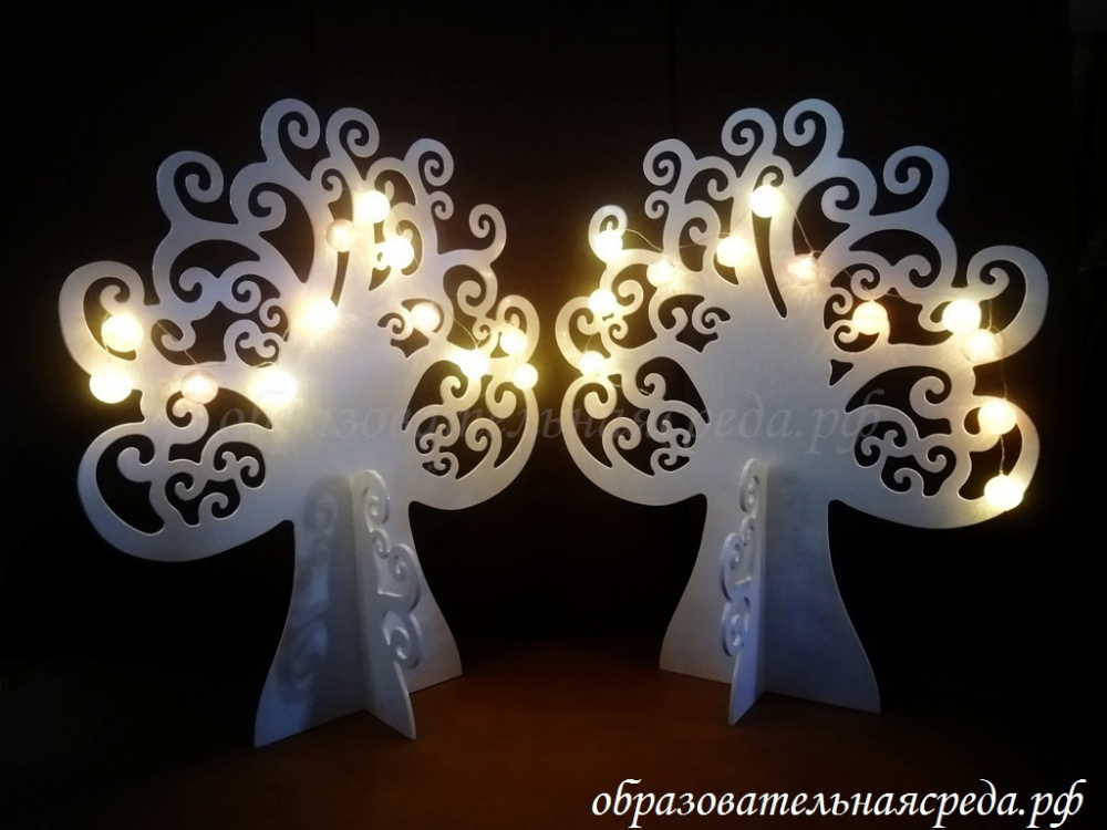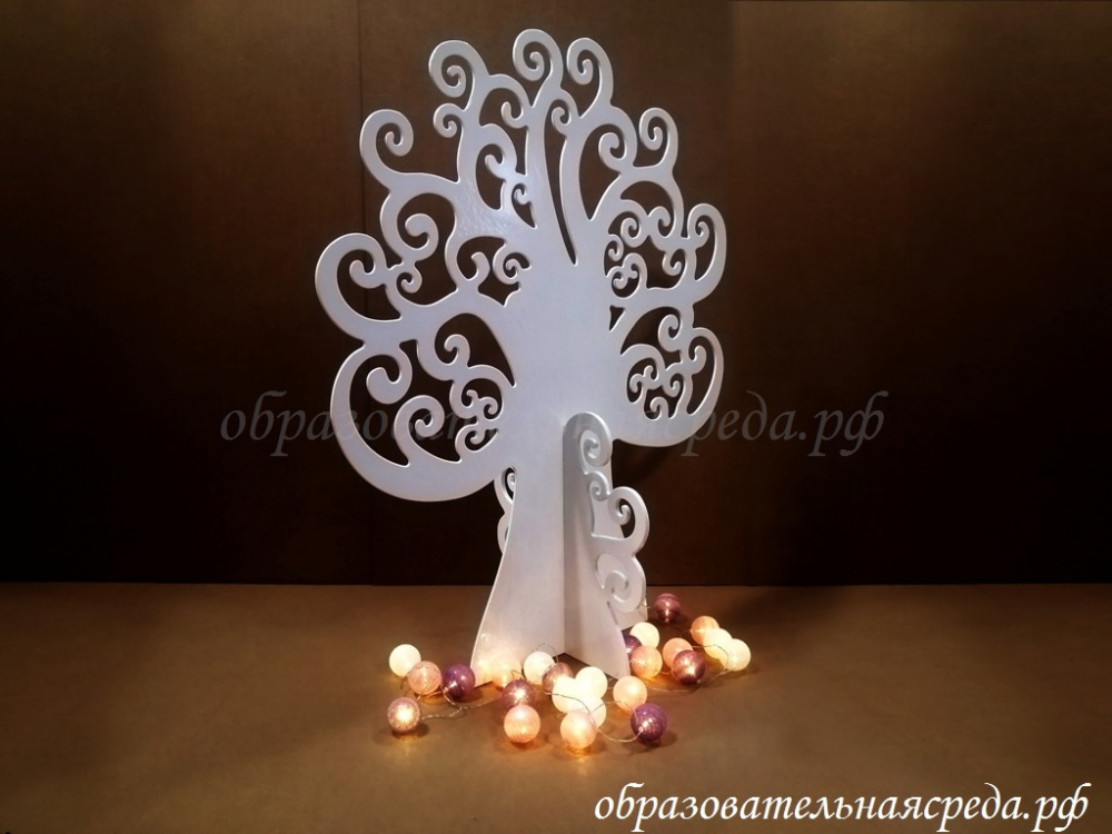 Театральная декорация "Дерево резное" выполнено из МДФ, и окрашенного в белый цвет. Высота дерева 1,2м, ширина - 1м. Дерево имеет красивую резную форму с завитками. Дерево резное порадует детишек не только в новогодние праздники, но и в повседневной жизни. Его можно украшать различными тематическими элементами (гирлянда в комплект не входит).