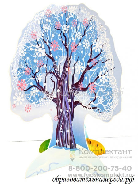 Театральная декорация "Яблоня" 4 сезона выполнена из МДФ, с нанесением полноцветного рисунка с двух сторон. Высота декорации 1,2м, ширина - 1м.