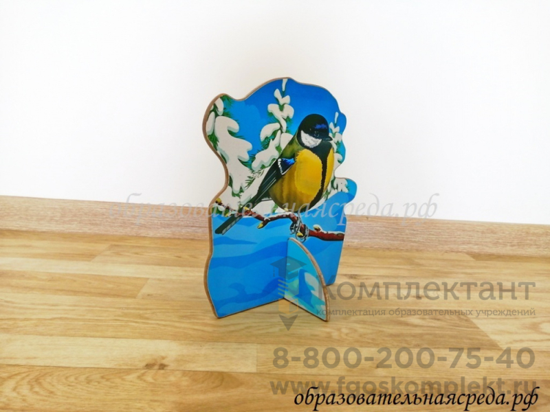 Театральная декорация "Лисичка-синичка" выполнена из МДФ, с нанесением полноцветного рисунка с двух сторон. Высота декорации 0,3м, ширина - 0,3м. Декорация подойдет в качестве дополнения к любому дереву или теремку, представленному у нас на сайте.