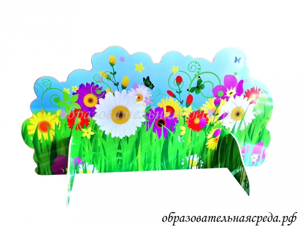 Театральная декорация "Поляна подснежников/цветник" выполнена из МДФ, с нанесением полноцветного рисунка с двух сторон. Высота декорации 0,5м, ширина - 1м.