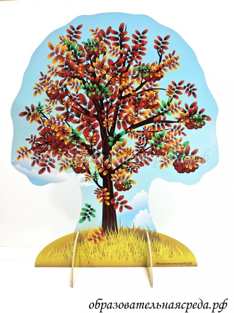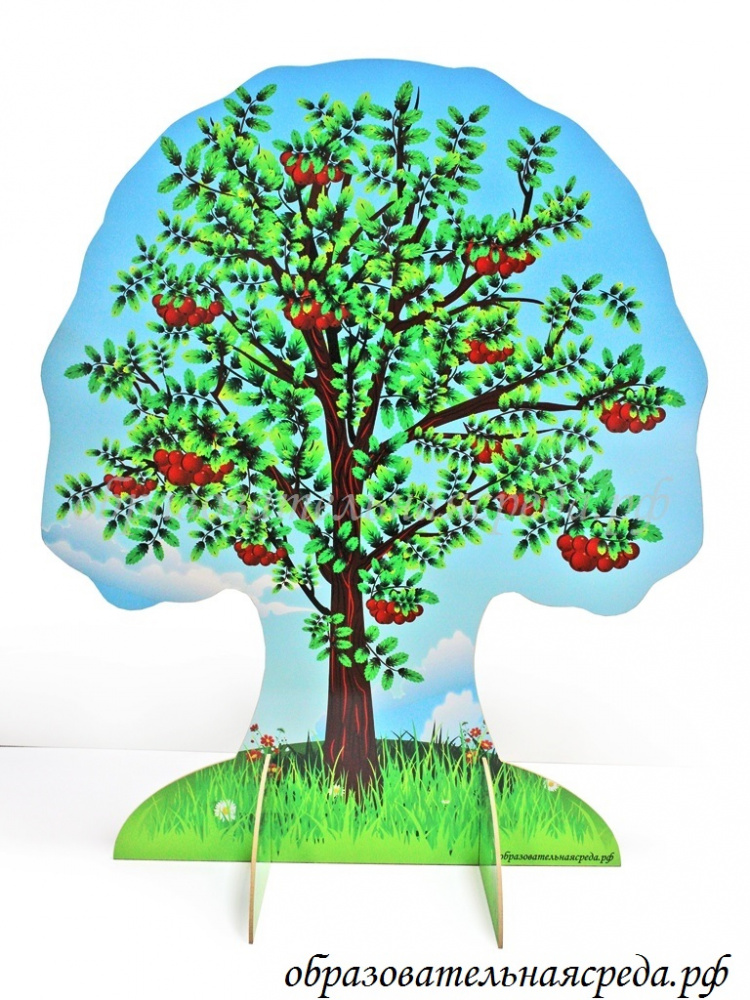 Театральная декорация "Рябина" (лето-осень) выполнена из МДФ, с нанесением полноцветного рисунка с двух сторон. Высота декорации 1,2м, ширина - 1м.