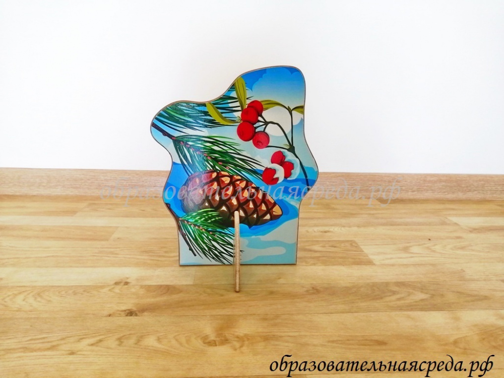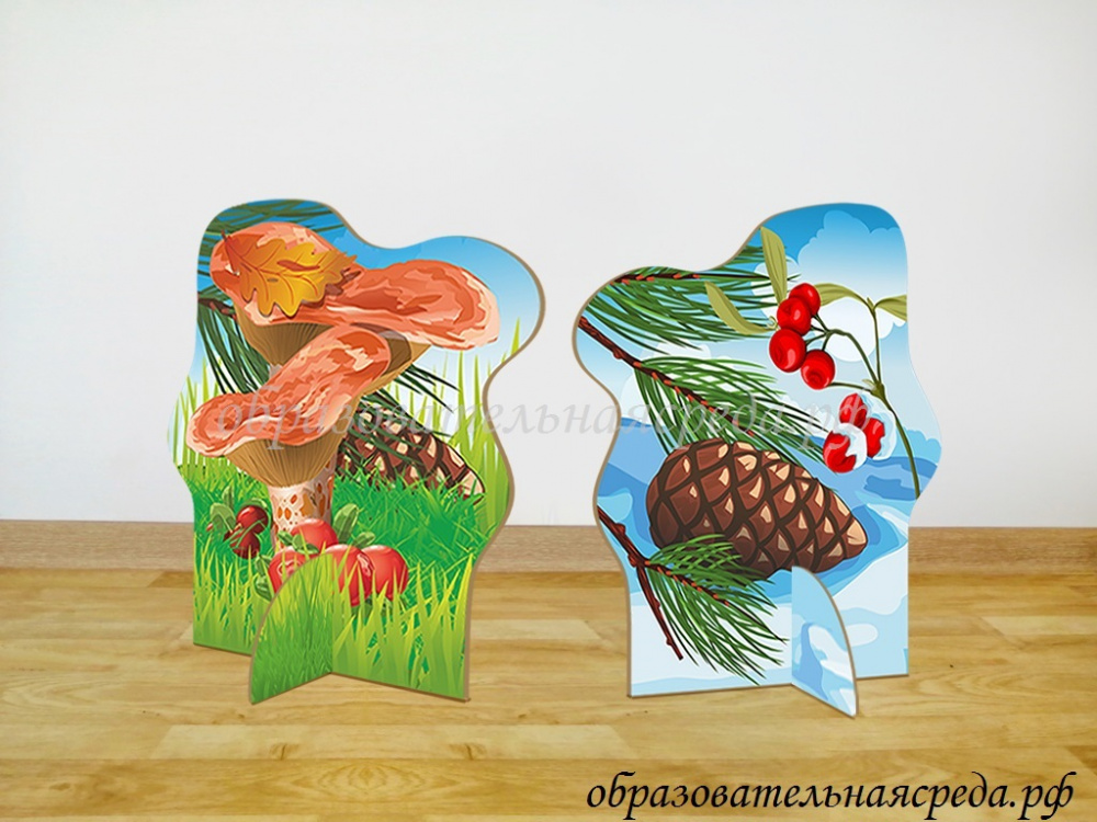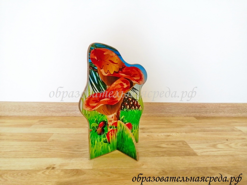 Театральная декорация "Рыжик-шишка" выполнена из МДФ, с нанесением полноцветного рисунка с двух сторон. Высота декорации 0,3м, ширина - 0,25м. Декорация подойдет в качестве дополнения к любому дереву или теремку, представленному у нас на сайте.