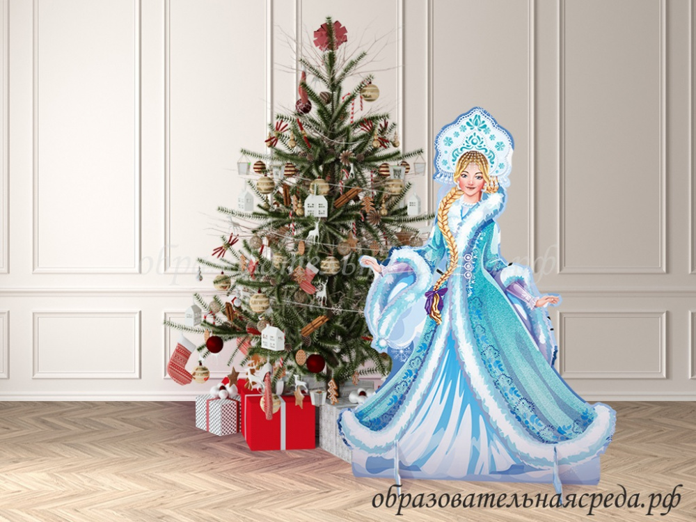 Театральная декорация "Снегурочка Волшебная" выполнена из МДФ, с нанесением полноцветного рисунка с двух сторон. Высота декорации 1,63м, ширина - 1,2м.