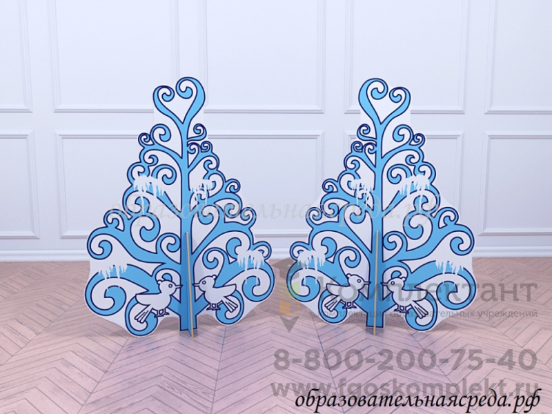 Театральная декорация "Снежное дерево" выполнена из МДФ, с нанесением полноцветного рисунка с двух сторон. Высота декорации 1м, ширина - 0,75м.
