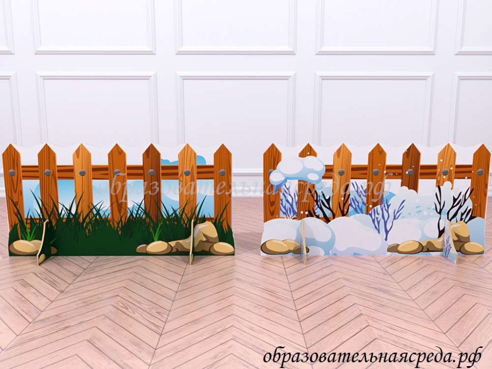Театральная декорация "Забор с травой и камешками" (лето-зима)