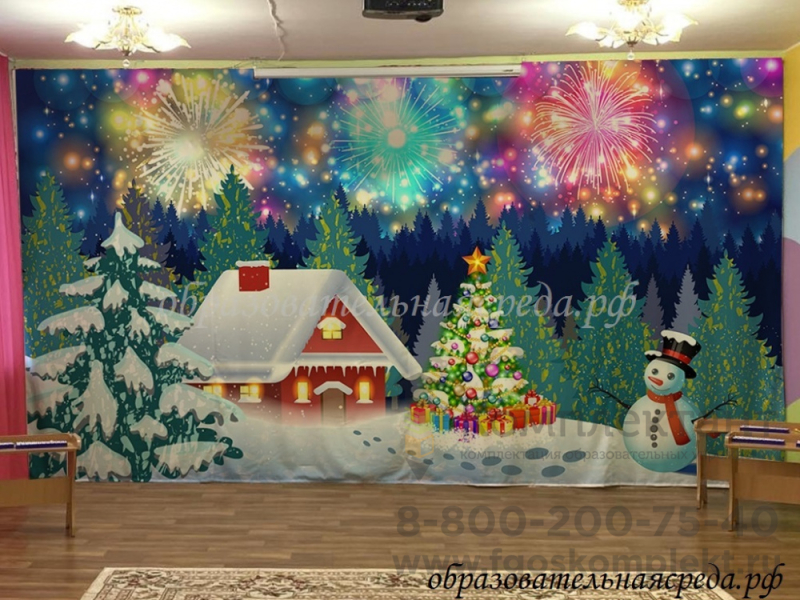 Занавес для сцены "Новогодний дом" (2,95*5,4м)