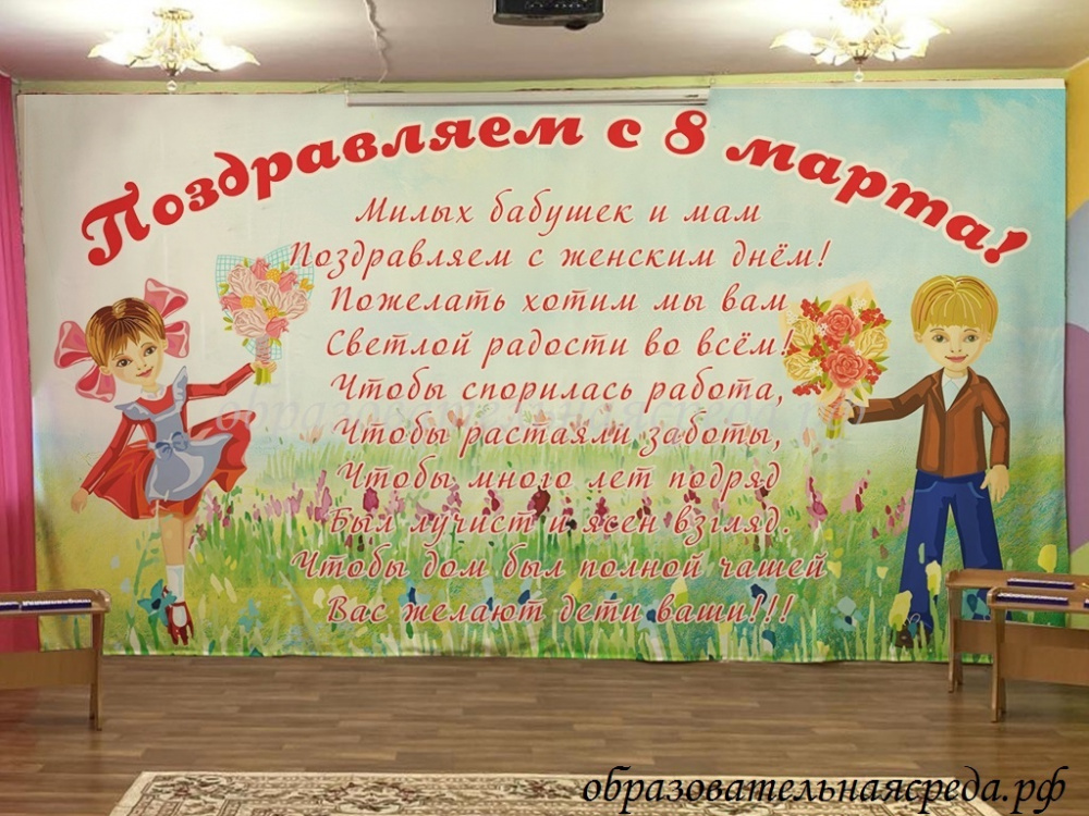 Занавес для сцены "Поздравляем с 8 марта" (2,9*5,4м)