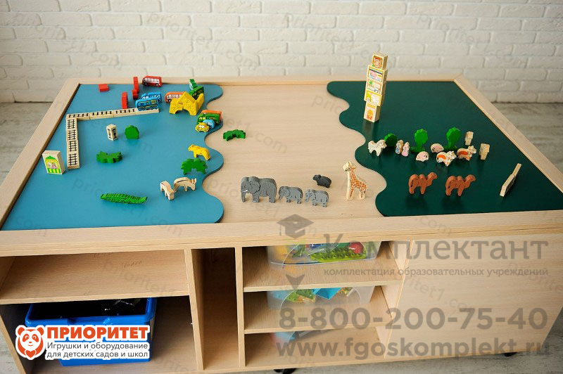 Игровая конструкция предназначена для использования в детских садах, коррекционных и развивающих центрах. Она соответствует ГОСТу и другим требованиям к игрушкам и мебели для детей. Наполнение позволяет всесторонне подходить к развитию и обучению дошкольника. Стол можно дополнить другими наборами, которые не входят в базовый комплект.