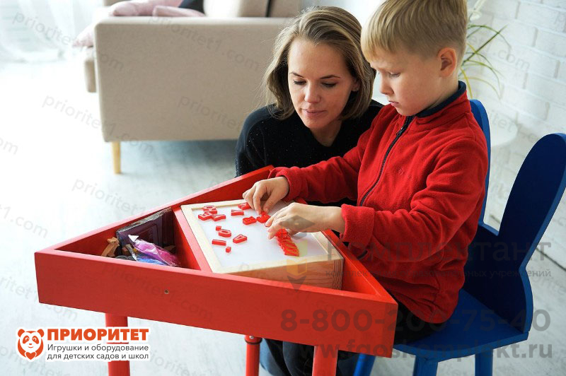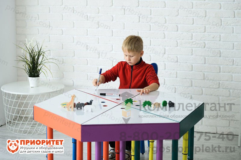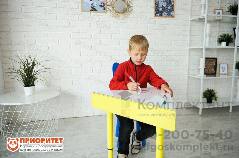 - Съемная крышка стола с одной стороны представляет собой маркерную поверхность. Можно рисовать сразу на ней и стирать, экономя бумагу.