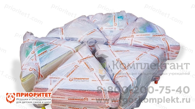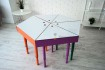 - Каждый стол выполнен в разном цвете. Окрашены все поверхности, включая ножки. Всего 6 оттенков: синий, зеленый, красный, желтый, фиолетовый, оранжевый.