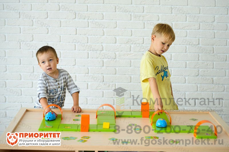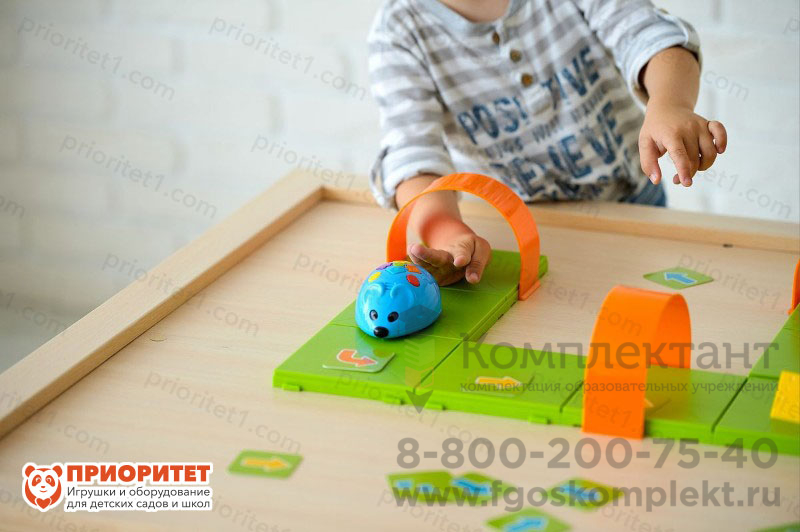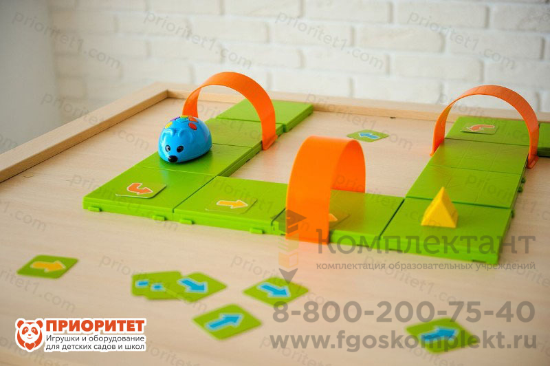 Обучение происходит в игровой форме. Из отдельных квадратных сегментов можно выложить дорожку или сплошную платформу для передвижения робота-мышки. На игровой доске расставляются тупики, арки. Цель можно обозначить кусочком сыра.