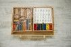 В модуле разместились 2 коробочки из даров Фребеля. Они выполнены из экологических материалов, мелкие детали внутри коробок удобно рассортированы по отсекам.
