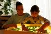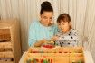 - Дары Фребеля. Педагог составляет из фишек рисунок. Задача ребенка – повторить цветной узор, отобразив его зеркально.