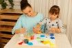 - Нанизать фигуры на подставку так, чтобы количество отверстий совпало с количеством штырьков.