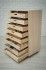 - Система хранения, которая состоит из деревянной тумбы с поворотными колесами, придающими комоду мобильности.