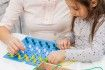 - Модуль 5. Нужно поделиться на пары. Один ребенок составляет разноцветный узор, второй должен повторить рисунок зеркально. Развиваются пространственные представления, концентрация и устойчивость внимания, ребенок учится работать по образцу.