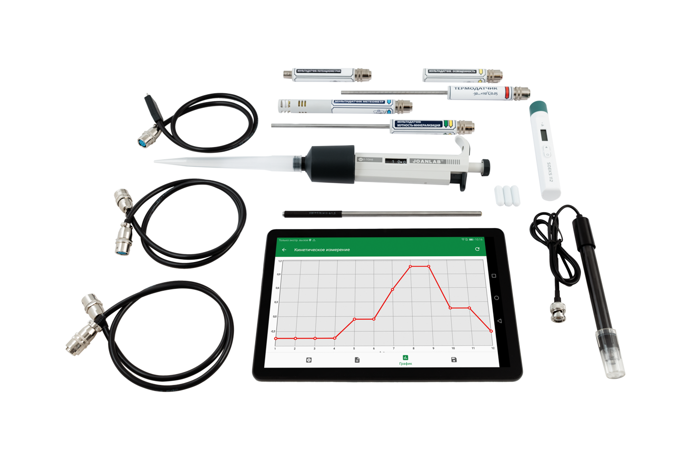 • Мультидатчик потенциометрия (pH метр 0…14pH/0.01, Вольтметр –1.5…+1.5В/0.001) - 1 шт.