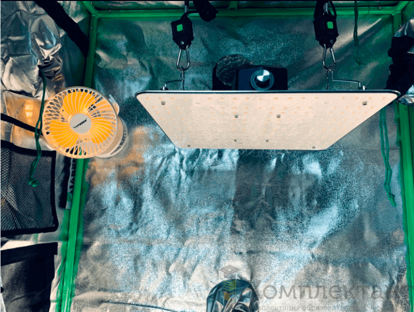 Квантум-борд последнего поколения с диодами Samsung LM281H 100 Вт. Полный спектр света полностью покрывает потребности растений на всех стадиях жизни. В комплект светильника входят подвесы. При установленном ЛЕД гроубокс не требует дополнительного охлаждения.