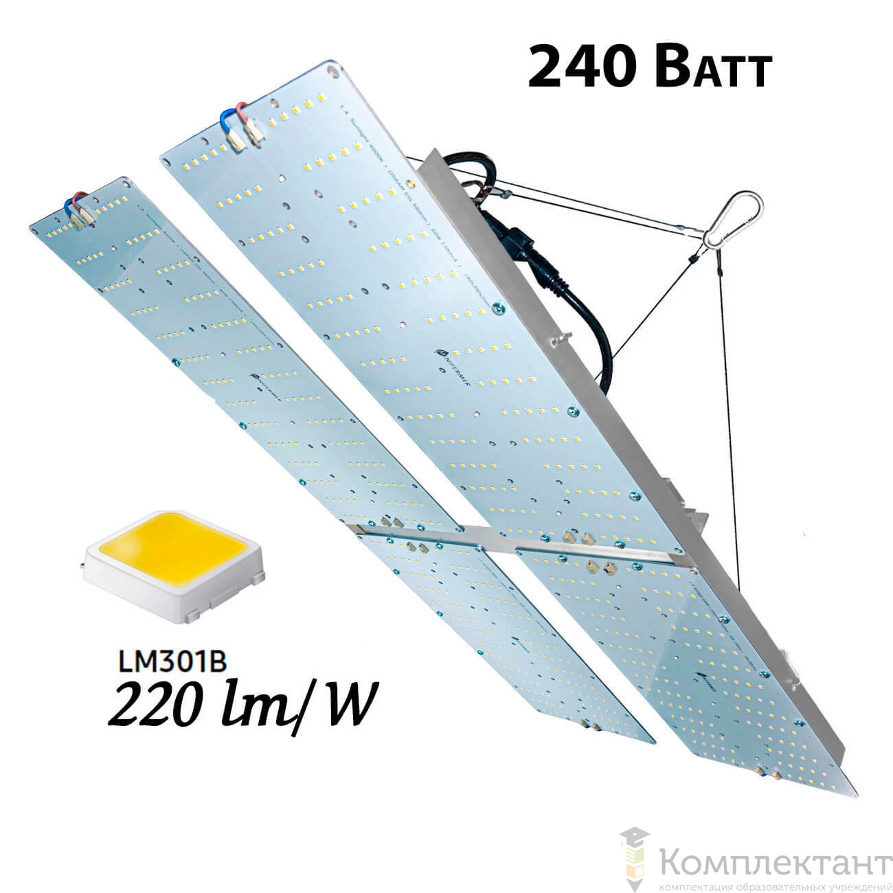 - Квантум-борд последнего поколения с диодами Samsung, состоящий из четырёх модулей по 60 Вт.