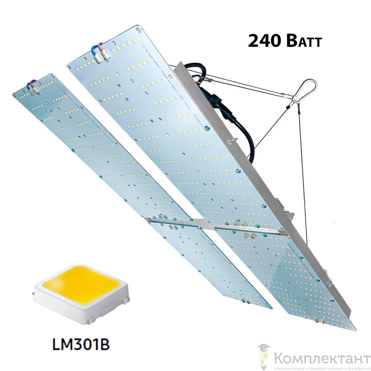 - Квантум-борд последнего поколения с диодами Samsung, состоящий из четырёх модулей по 60 Вт.