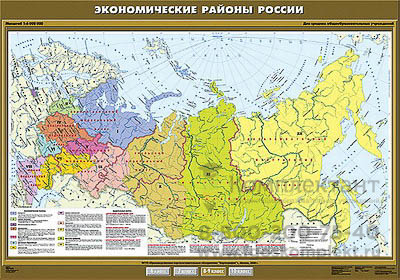 Масштаб 1:6000000, формат 140*100 см. Штриховыми значками на карте показаны границы России, субъектов Российской Федерации, фоновым кантом даются границы Федеральных округов. Цветными фонами окрашены экономические районы России. Односторонняя печать, двустороннее ламинирование, лицевая сторона покрыта матовым ламинатом.