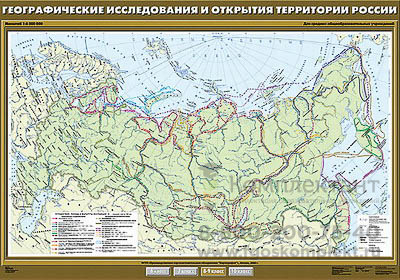 Учебн. карта "Географические открытия и исследования территории России" 100х140
