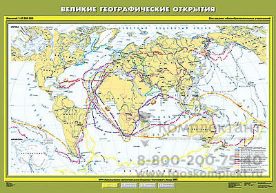 Учебн. карта "Великие географические открытия" 100х140
