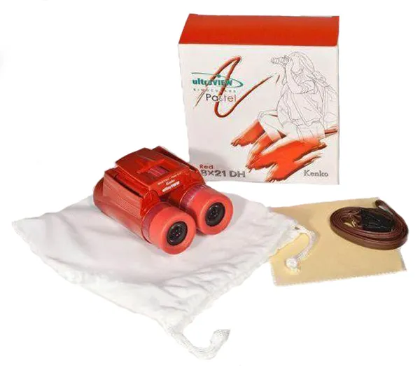 Бинокль Kenko Ultra View 8x21 Red – необычный туристический бинокль в красном корпусе. Бинокль ориентирован на использование в сухую погоду. Корпус модели получился компактным и легким за счет использования в оптической конструкции призм типа roof и корпуса из поликарбоната.