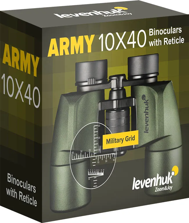 Представляем Levenhuk Army 10x40 – полевой бинокль с измерительными шкалами, который отлично подойдет для охоты, экстремального туризма, тактических и охранных наблюдений, геодезии. Прибор позволяет не только изучать местность и обнаруживать отдаленные цели на увеличении 10 крат, но и проводить множество измерений: дистанции, высоты объектов, горизонтальных и вертикальных углов. Это становится возможным благодаря угломерной сетке и дальномерной шкале, расположенным в одном из окуляров бинокля.