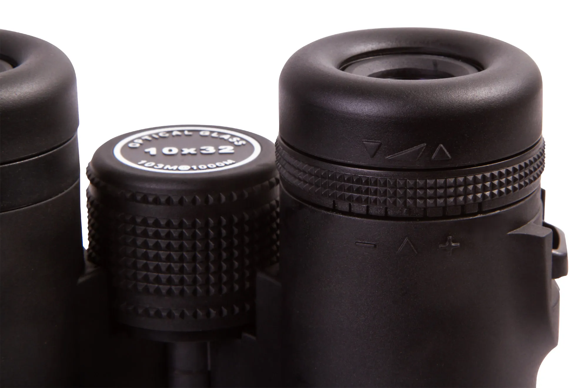 Оптика дает 10-кратное увеличение, при этом поле зрения остается широким. Линзы и призмы сделаны из стекла BK-7 с многослойными просветлением, поэтому передаваемая картинка получается четкой, ясной и контрастной. Бинокль не светосильный, вести наблюдения лучше при свете солнца. В конструкции используются окуляры с поворотно-выдвижными наглазниками, есть диоптрийная коррекция. Благодаря этому пользователи с неидеальным зрением могут оптимально отрегулировать оптику под свои нужды. Резкость настраивается при помощи барабана центральной фокусировки. Корпус пластиковый – легкий и противоударный.