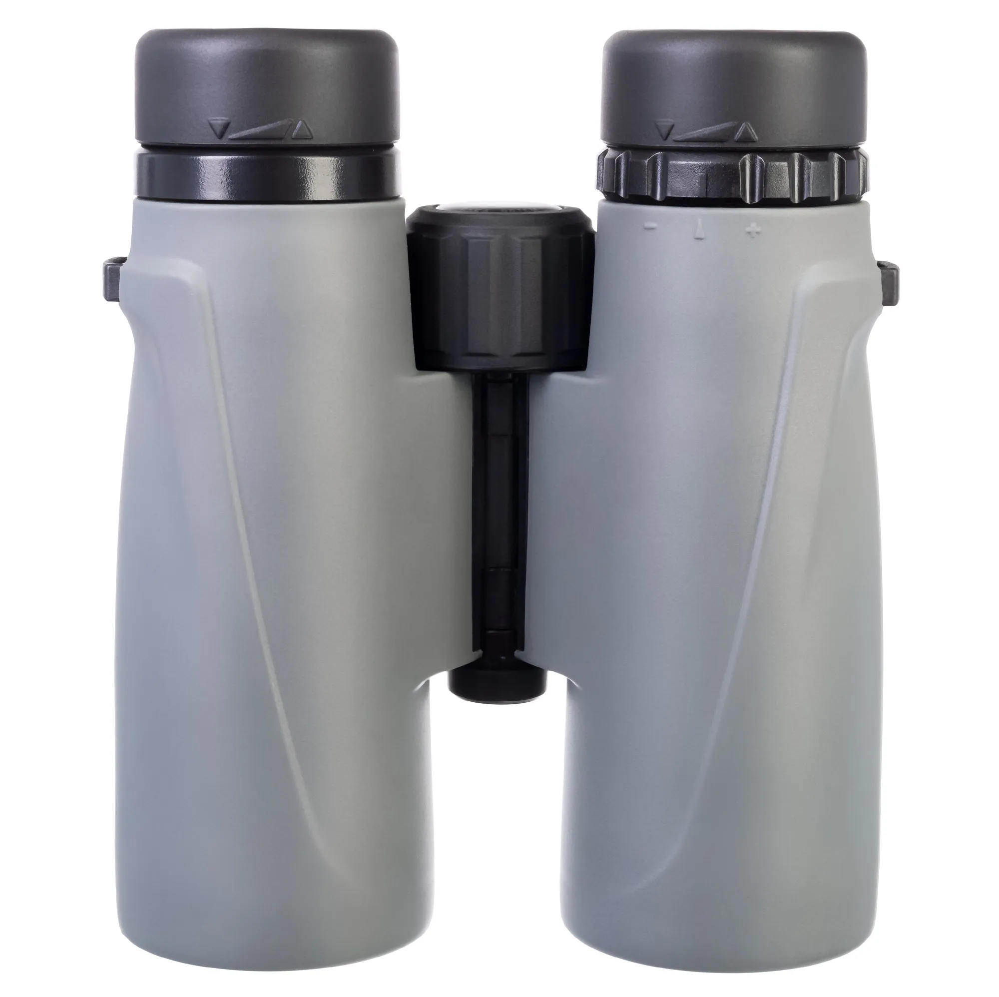 В конструкции бинокля учтено все для комфортногоиспользования. Межзрачковое расстояние можнорегулировать, с помощью поворотно-выдвижных наглазниковудобно менять положение бинокля относительно глаз, естьвозможность настройки диоптрий. Корпус покрыт плотнойсветло-серой резиновой оболочкой – она смягчаетудары и защищает прибор от повреждений. Благодарярельефной поверхности бинокль не скользит в руках.