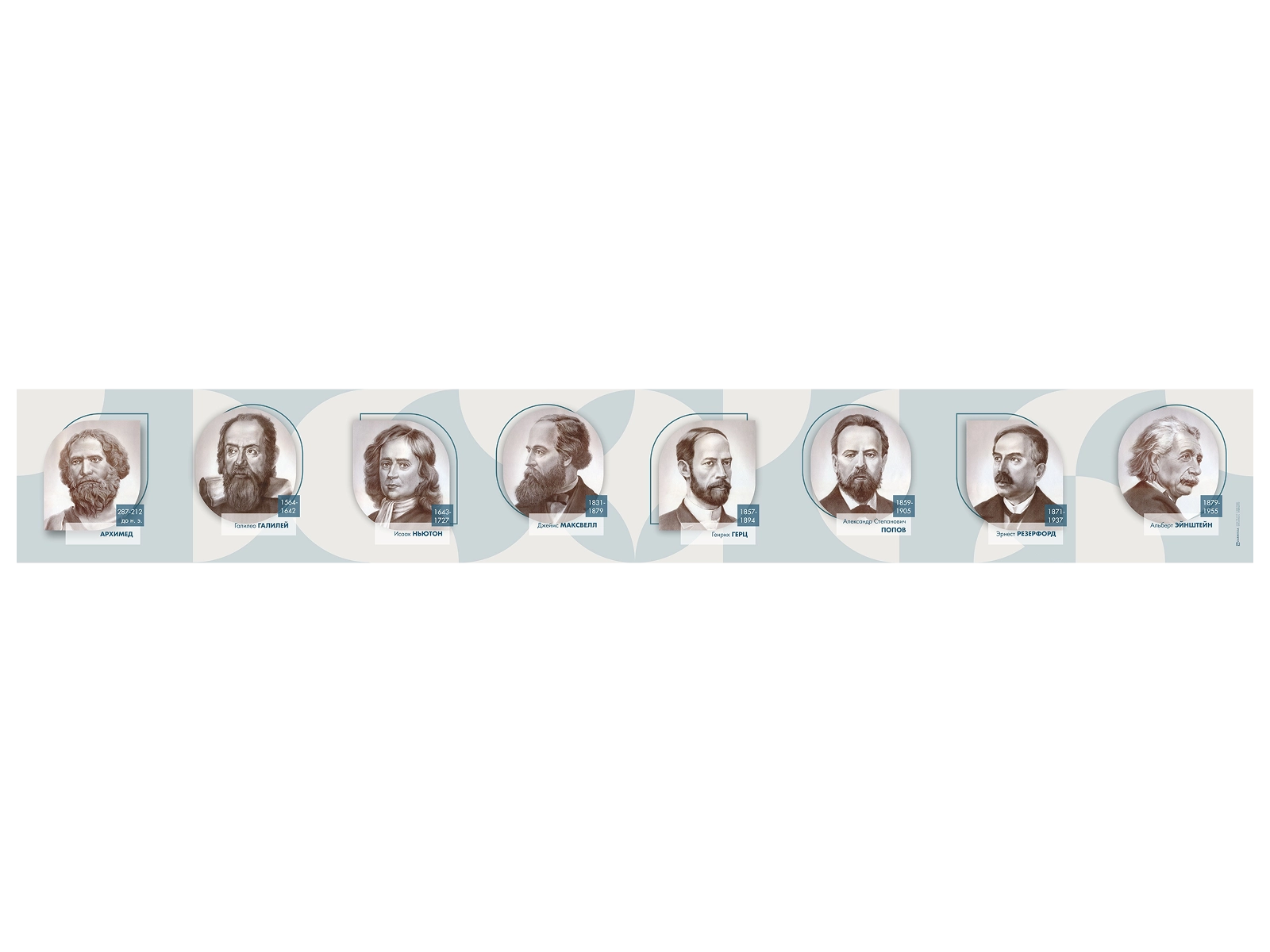 Стенд-лента предназначен для наглядного ознакомления учащихся общеобразовательных учреждений с деятелями в области физики.