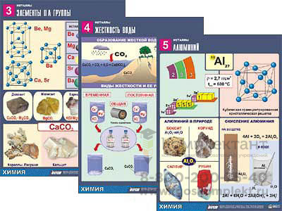 Комплект охватывает следующие темы: "Щелочные металлы", "Химия щелочных металлов", "Элементы IIА группы", "Жесткость воды", "Алюминий", "Применение алюминия", "Железо", "Виды коррозии", "Методы защиты от коррозии", "Общие свойства металлов".