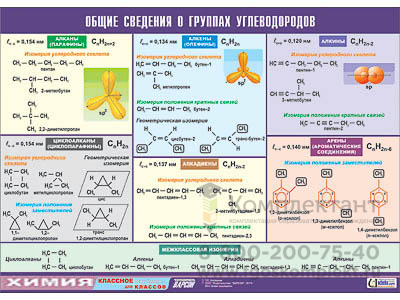 Таблица демонстрационная Общие сведения о группах углеводородов (винил 100х140)