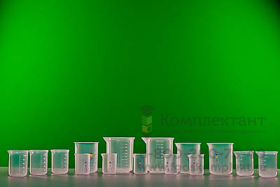 Комплектность: стакан 50 мл со шкалой (полипропилен) - 5 шт., стакан 100 мл со шкалой (полипропилен) – 5 шт., стакан 250 мл со шкалой (полипропилен) – 3 шт., стакан 500 мл с делениями (полипропилен) – 2 шт.
