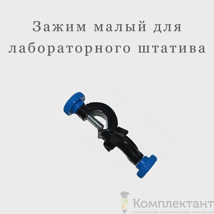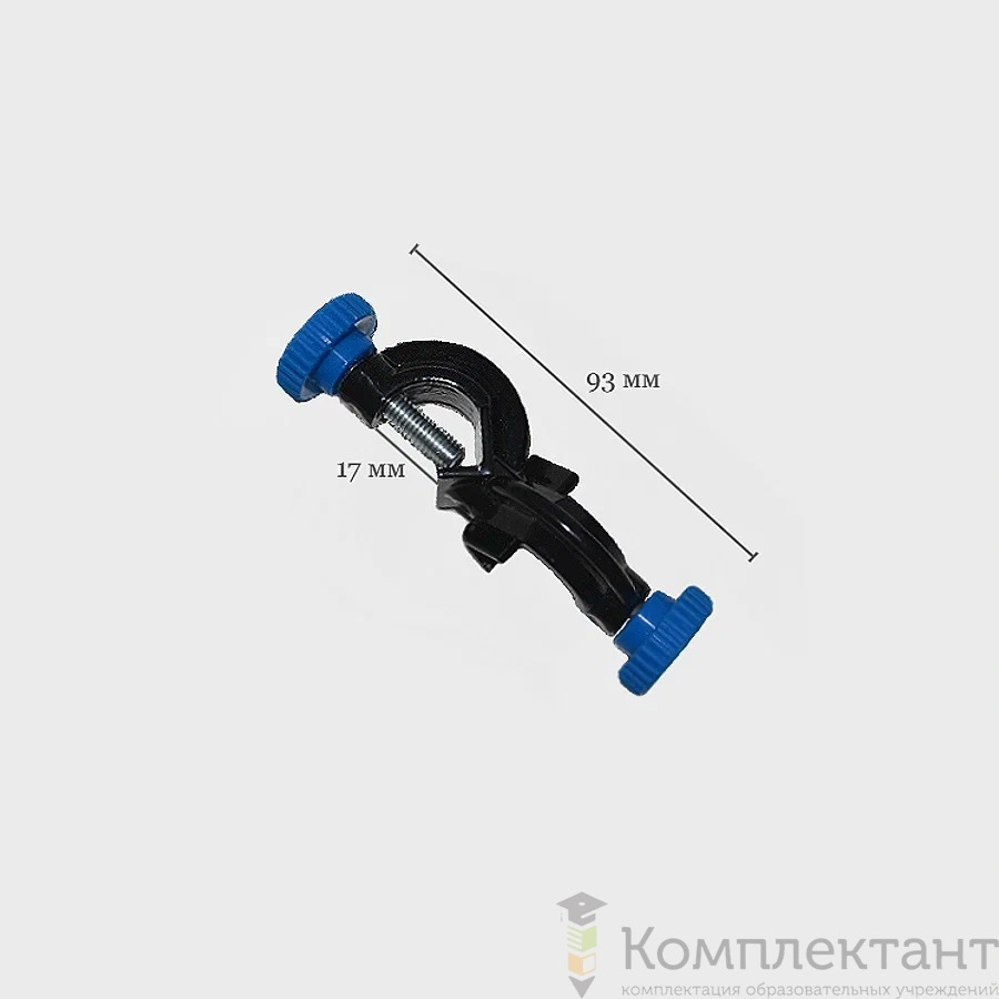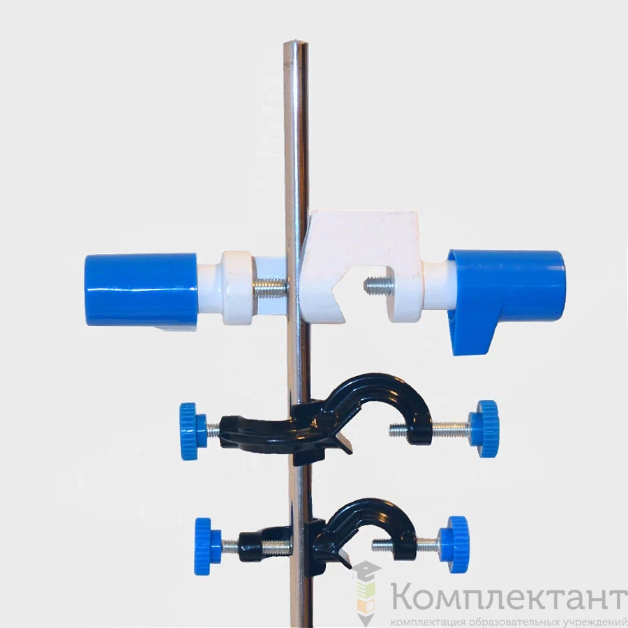 Зажим надёжно фиксирует составляющие между собой, тем самым минимизируя риск падения лабораторной посуды из штатива.